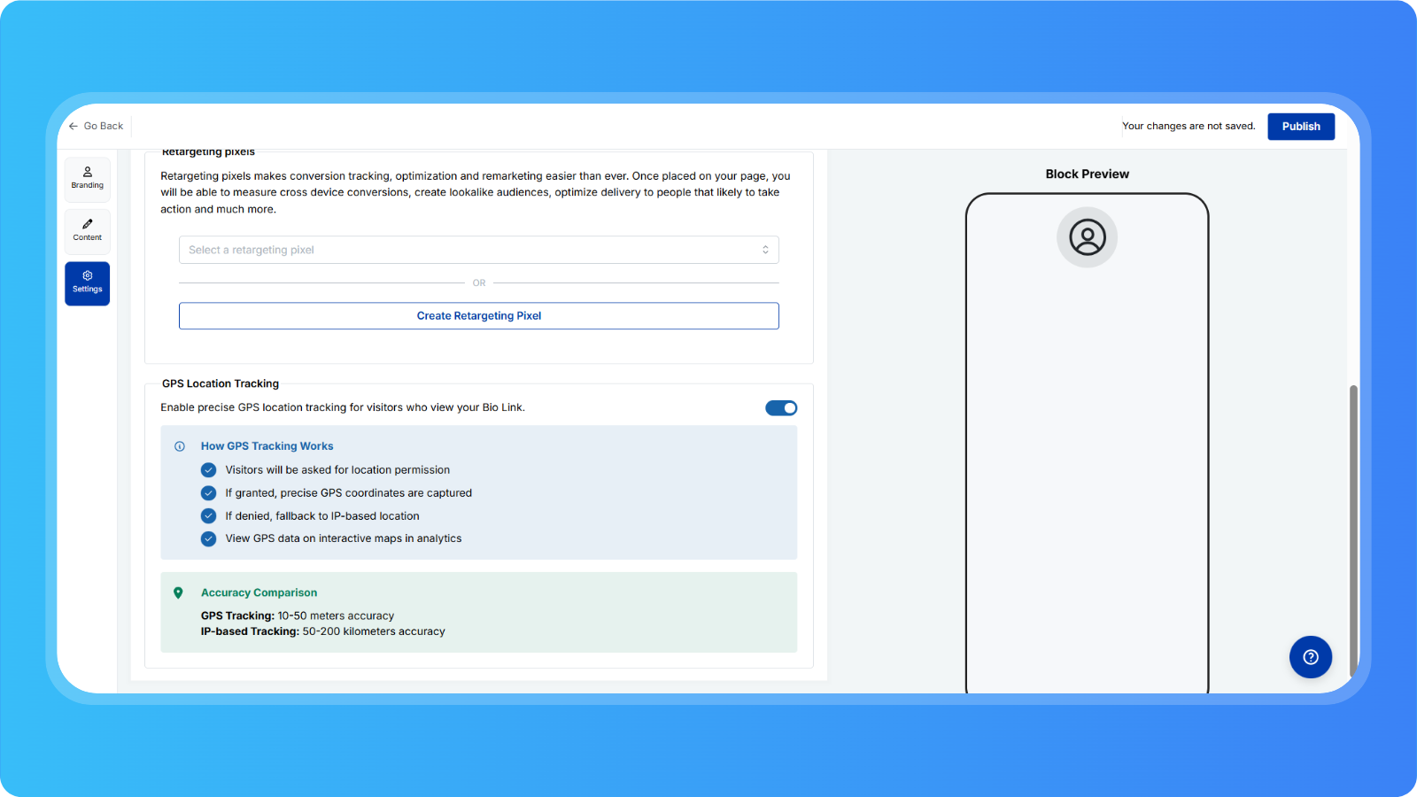When you click "Update" on your bio link, all pending changes in opened blocks are now automatically saved. No more losing work or needing to save individual blocks before updating the entire page.