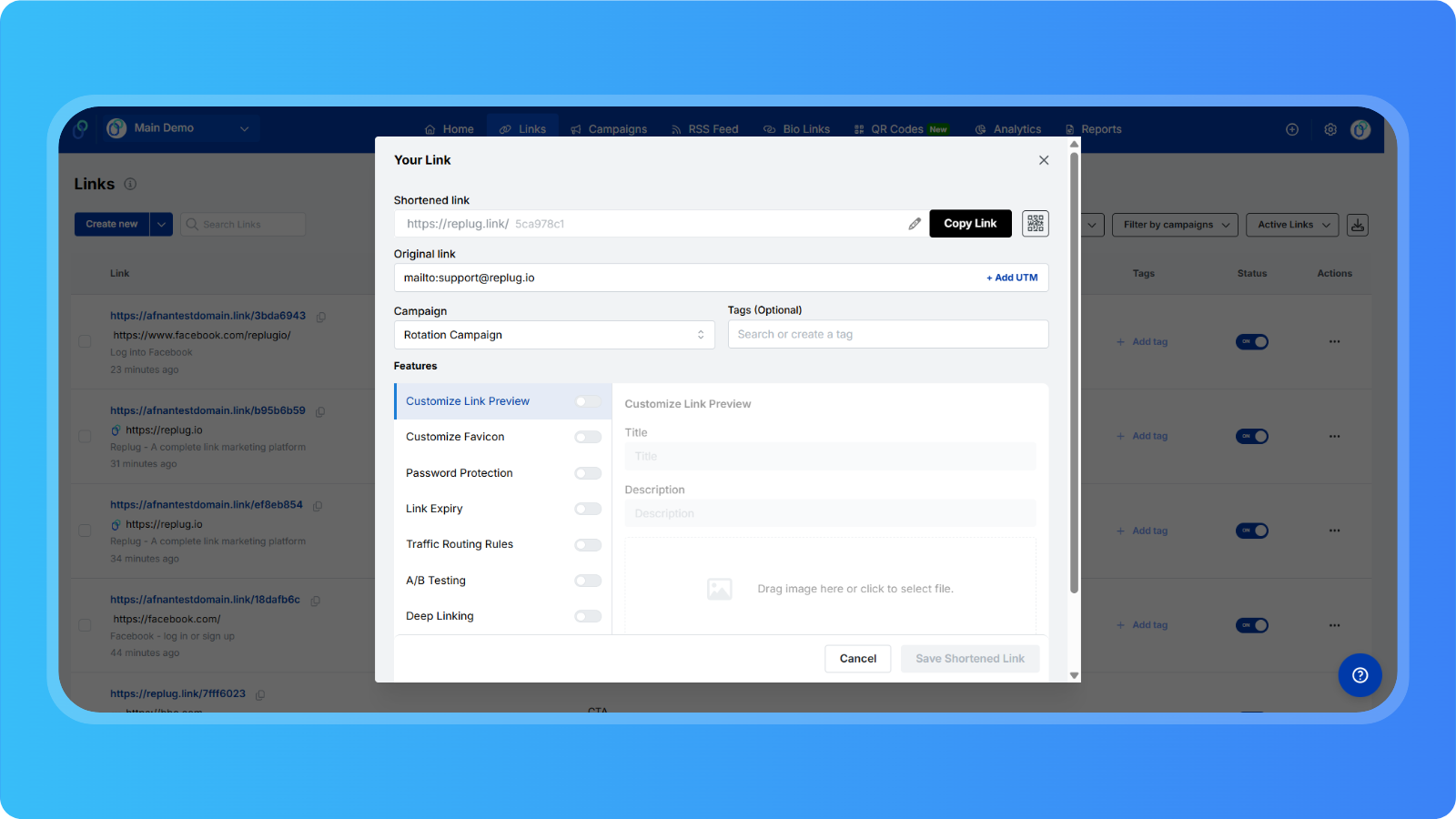 Create shortened links for email addresses (mailto:) and phone numbers (tel:)! Now you can: