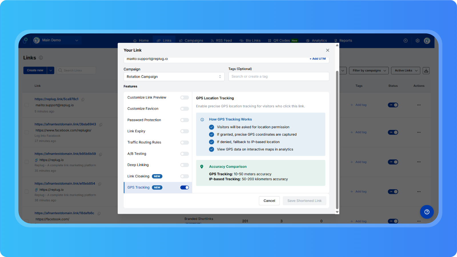 πΊοΈ GPS Location Tracking with Interactive Maps for Shortened links, Biolinks & QR Codes