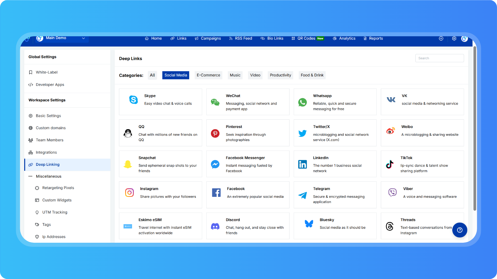 Add Bluesky and Threads to your Bio Links social blocks! You can now feature up to 8 social media profiles, including these newest platforms, keeping your link-in-bio pages current with the latest social networks.